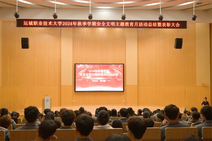 为进一步做好文明校园创建工作,加强校园安全文明建设,提升学生的自治管理和安全意识及文明素养,12月26日,我校在图书馆一楼报告厅召开了2024年秋季学期安全文明主题教育月活动总结暨表彰大会。此次会议全面总结和回顾了过去一学期的文明教育活动和校园安全工作,并对在文明教育和校园安全工作中做出突出贡献的个人和集体进行表彰。全体学工人员、各学院学生组织代表、各班班长参加会议。